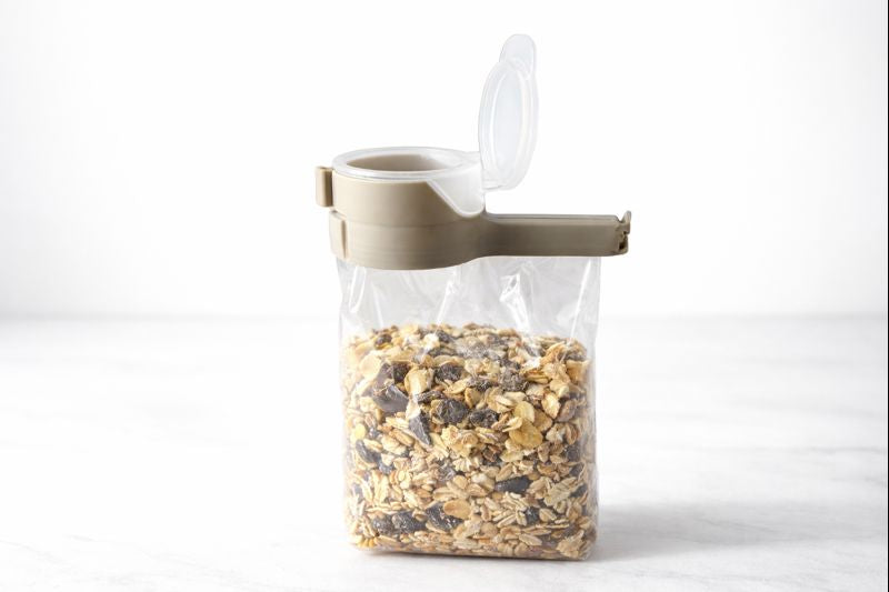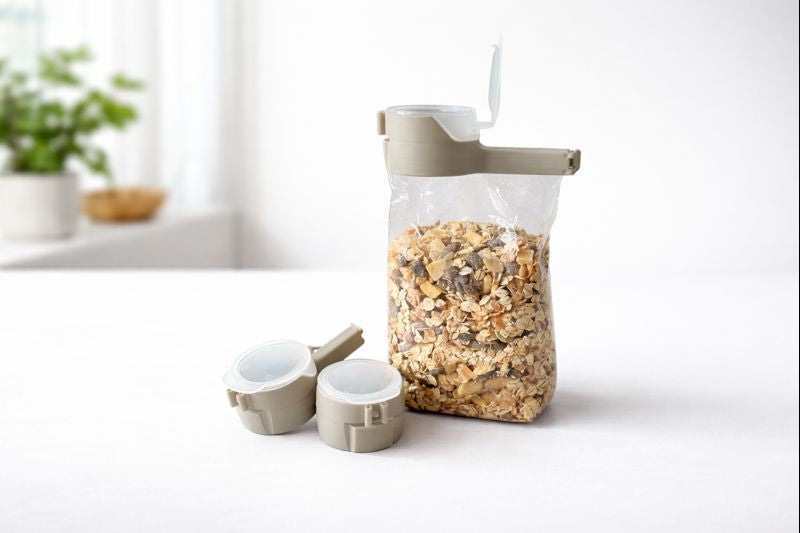Mit LIVO® verschliesst du angebrochene Verpackungen luftdicht, sauber und mit integrierter Ausgiessfunktion – ganz ohne Umfüllen.